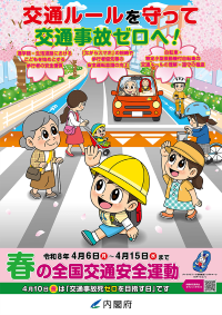 「春の全国交通安全運動」が、4月6~15日の10日間、実施されます。また、4月10日は「交通事故死ゼロを目指す日」です。