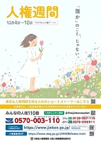 <人権について考えるーーなかなか設けられない機会です。人権週間のテーマは、「『誰か』のこと じゃない。」。命を軽んじ人権を踏みにじるような事件が日々報道されるなか、皆さんもお近くの催しに参加して「思いやりの心」や「かけがえのない命」について、あらためて考え、「誰か」のことではなく自分ごととして問いかけてみましょう。