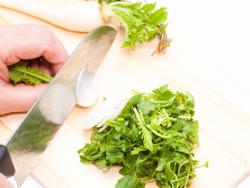 「ぺんぺん草」とも。アブラナ科ナズナ属。田畑、路傍、庭園などに自生する越年草。刻んで汁の実にすると風味が出ます。食物繊維、ビタミン、ミネラル、鉄分、カルシウム、亜鉛を含み、解毒作用や利尿作用、止血作用、胃腸障害やむくみに効果があるといわれています。