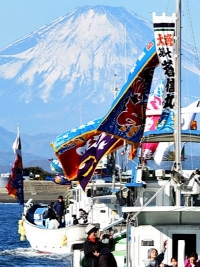 ▼漁村では、「舟祝」「ノリゾメ」「フナオコシ」などといって、船に集まり供え物をして、仕事始めの祝いをします。