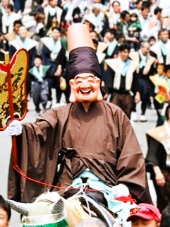 しかし、金銭を浪費し、「文明開化」にもそぐわないという理由で、「山笠」や「盆踊り」とともに正月の「松囃子」は禁止されてしまいました。そして、大東亜戦争終結後の昭和21年(1946)5月、「博多復興祭」として空襲後の焼け野原で「子供山笠」とともに「博多松囃子」が復活しました。肩衣を紙で作り、ハリボテを首から胸に下げて馬となし、戦災を免れた三味線、太鼓などを借り集めました。瓦礫になった町に鳴り響く「博多どんたく」のお囃子は「博多っ子」たちに勇気を与えました。