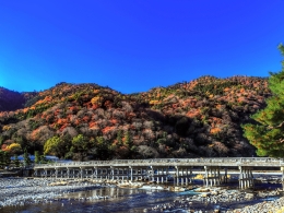 渡月橋を境に、上流の「大堰川」から「桂川(かつらがわ)」と名を変えて流れる川で、平安時代の貴族たちが舟遊びや紅葉狩りを楽しみました。