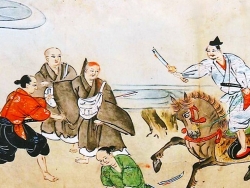 ◇伊豆伊東の俎岩(まないたいわ)に置き去りされた「伊豆法難」。