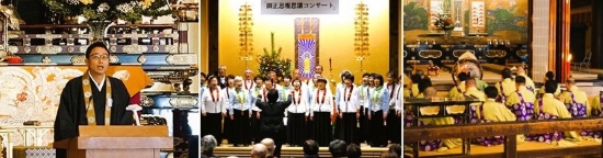 宗祖「親鸞」の祥月命日には「報恩講(ほうおんこう)」が行なわれます。親鸞の「御真影(ごしんねい)」を安置した「御影堂(ごえいどう)」での法話のほか、親鸞の主著『教行信証(きょうぎょうしんしょう)』(坂東本)の展示、昼食の「お斎(おとき)」(精進料理をいただく昼食)、合唱や吹奏楽のコンサートなどさまざまな行事が催されます。