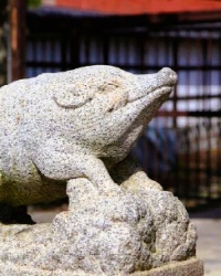 十二支の「亥」だけでなく、動物の「猪(いのしし)」も、防火のおまじないとして飼われていたそうです。火事が多かった「吉原」あたりの往来を猪がうろうろしていたり、8大将軍「徳川吉宗」も柳原土手(やなぎはらどて)下に猪を放し飼いにしたり、幕末、呉服屋の大店がこぞって猪を飼っていたりしていたとか。