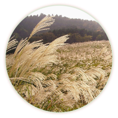 イネ科ススキ属。収穫したものを悪霊から守る力があるとされます。屋根材のほかに炭俵、家畜の餌などに利用されます。中秋の名月では魔除け、災難除けとして飾られます。「尾花(おばな)」とも。「芒」という漢字もしばしば使われます。