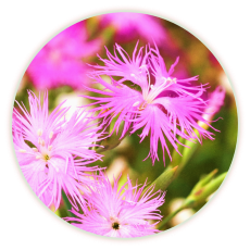ナデシコ科ナデシコ属、薄紅色の可憐な花をつけます。「撫子」は「撫でし子」、つまり、愛しい子、かわいがっている子の意味。英語の pink はもともと撫子の花を意味していましたが、のちにピンク色そのものも指すようになりました。