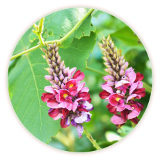 マメ科クズ属、周囲の木をツルで覆ってしまう程の生命力。大和の国(奈良県)の国栖(くず)が葛粉の産地であったことから。「葛」は漢名。「まくず」とも。根に含まれる多量の澱粉は葛粉の原料になり、漢方薬で使われる「葛根(かっこん)」にも用いられます。ツルの繊維で「葛布(くずふ、くずぬの)」を織ります。秋、紫色の香りのある蝶形の花が咲き、紅葉も美しい。