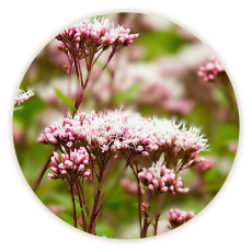 キク科ヒヨドリバナ属。花の色は藤色で、花弁の形が袴の形をしているのが名前の所以。桜餅のようなよい香りがします。平安時代の女性は、干した藤袴の茎や葉を水につけて髪を洗いました。また、防虫剤や芳香剤、お茶などにも利用していました。