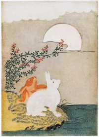 現在の「お月見(おつきみ)」の風習は、古代中国の「中秋節(ちゅうしゅうせつ)」で行なわれていた「観月の宴」が起源といわれています。日本には平安時代に伝わったと考えられ、宮中や貴族のあいだで「観月の宴」が盛んに催されました。「桂離宮(かつらりきゅう)」の書院群や「月波楼(げっぱろう)」は、観月を楽しむために設計され建てられたといいます。「月波楼」は、中国唐代の詩人「白居易(はくきょい)」の『春題湖上』の一句「月点波心一顆珠」(月は波心に点じ一顆の珠)にちなんで名付けられたそうです。