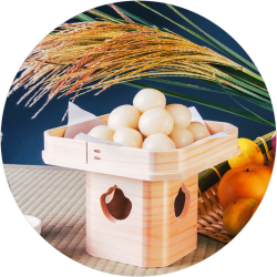 「月見」「観月(かんげつ)」は、月を眺めて賞することですが、一般には旧暦8月15日と9月13日の夜のお月見のことをいいます。お月見のお供え物は、「月見団子」、その年に収穫した芋、枝豆、柿、栗など。そして、「薄(すすき)」や秋草の花を飾ります。里芋を供える風習にちなんで「芋名月(いもめいげつ)」ともいいます。