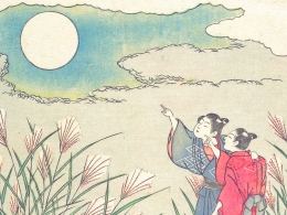 平安時代、中国から日本にお月見の習慣が入ってきました。はじめは貴族たちが詩歌や管絃を楽しみ酒を嗜む風雅な催しでした。江戸時代には、庶民もお月見をするようになりました。芋などを供えるのは、収穫を感謝する農事でもある表れです。