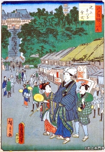「会式(えしき)」とは、宗祖の命日に行なわれる法要行事です。日蓮宗でも全国の寺院で「お会式」が営まれますが、日蓮が入滅した霊跡である池上本門寺の「お会式」はとくに盛大で、江戸時代、町人の熱心な信徒が増えたころは、江戸市中や近郷から多くの人びとが集まりました。