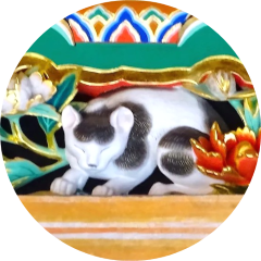 伝説的な彫刻職人「左甚五郎(ひだりじんごろう)」の手によるものと伝わる「眠り猫(ねむりねこ)」は、家康を守るために寝ていると見せかけ、いつでも飛びかかれる姿勢なのだといわれています。しかし、その裏側には竹林に遊ぶ雀が彫られていて、猫は爪も見せずにのんびり寝ていることから、平和な世の中を表しているのだとも考えられます。