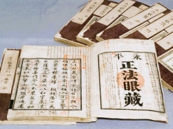 天福元年(1233)深草に「興聖寺(こうしょうじ)」を建立。道元34歳。京都深草の安養院(あんよういん:現「欣浄寺」)にて『正法眼蔵(しょうぼうげんぞう)』の第一巻となる「弁道話(べんどうわ)」を著し、これが開宗宣言ともいわれます。「弁道話」は、仏法における座禅の意義を18の設問自答によって明らかにしたもの。『正法眼蔵』は、道元が生涯をかけて著した87巻におよぶ大著で、日本の曹洞禅思想の神髄が説かれています。当時の仏教者は著作を「漢文」で書いていましたが、真理を正しく伝えたいと考えた道元は、仮名を用いた日本語で『正法眼蔵』を書きました。
